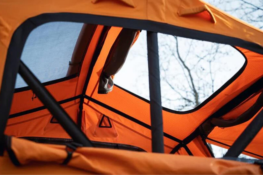 sturdy vehicle comes with a weatherproof rooftop tent and a thick