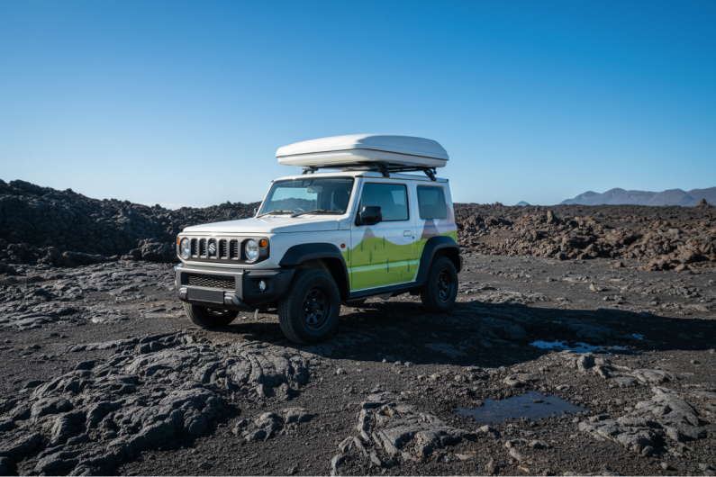 The Suzuki Jimny 4x4 Roof Tent (2026) is the perfect companion for those with an adventurous spirit. This rugged yet compact mini SUV blends agility with power, making it ideal for exploring Iceland’s diverse terrains. With an impressive 19 cm ground clearance, it’s built to handle every track. Set up camp anywhere with ease thanks to this rooftop tent, and wake up surrounded by Iceland’s breathtaking landscapes!