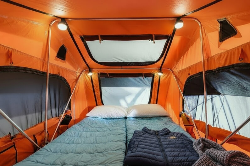 mattress, giving two adults a cozy retreat after a day of exploring.