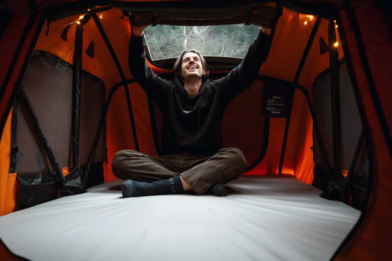 sturdy vehicle comes with a weatherproof rooftop tent and a thick