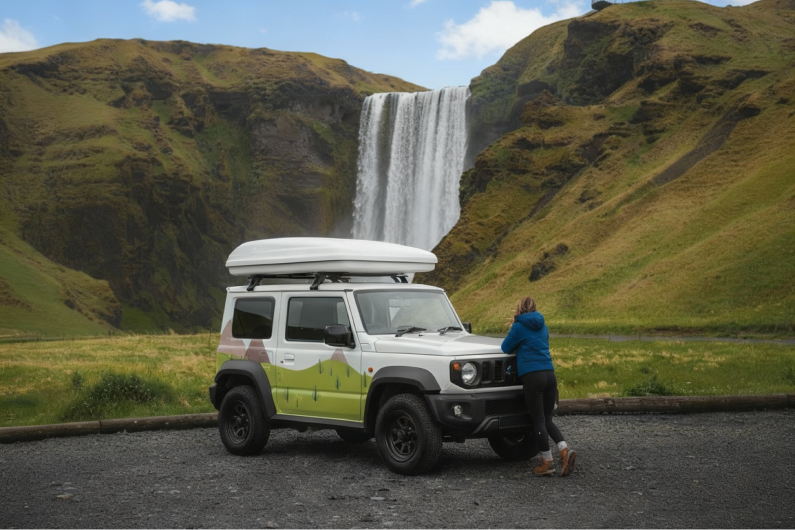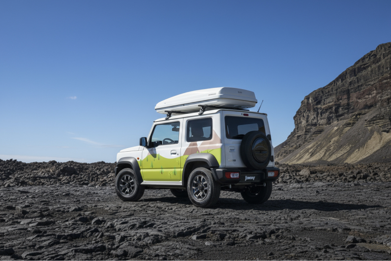 The Suzuki Jimny 4x4 Roof Tent (2026) is the perfect companion for those with an adventurous spirit. This rugged yet compact mini SUV blends agility with power, making it ideal for exploring Iceland’s diverse terrains. With an impressive 19 cm ground clearance, it’s built to handle every track. Set up camp anywhere with ease thanks to this rooftop tent, and wake up surrounded by Iceland’s breathtaking landscapes!