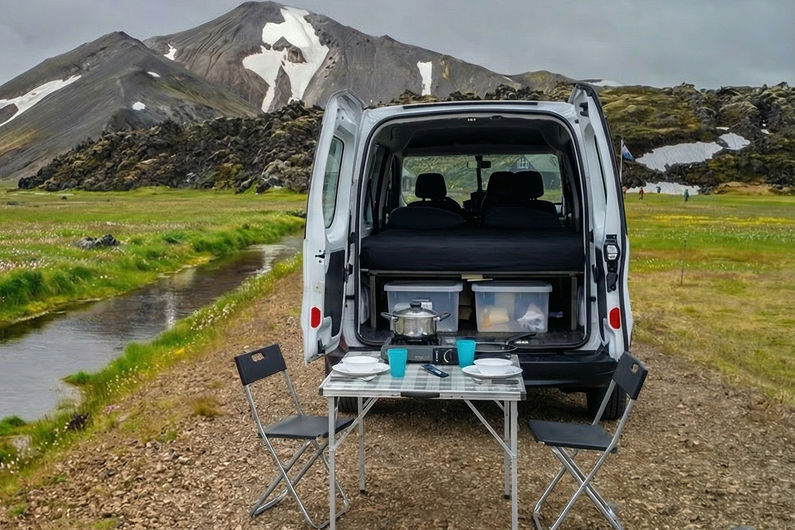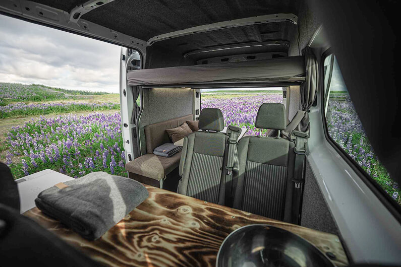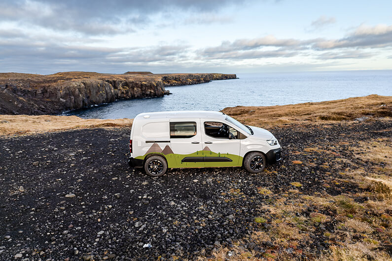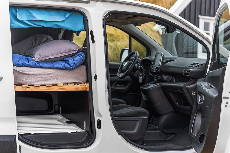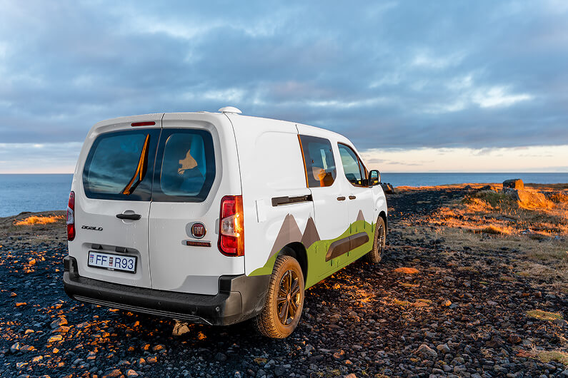 Make Iceland your playground with our new automatic Campervan Play Max! Head to the Ring Road and enjoy the drive in the comfortable and affordable Fiat Doblo or similar, equipped with all the essentials and a cozy interior design. Keep in mind that it can only accommodate up to two adults, so bring your partner or your best friend, change your backyard every day and enjoy dinner under the starlit sky. Please note that this camper’s heating system only works when it is plugged into an electric hookup at a campsite.