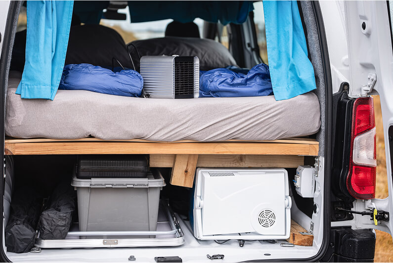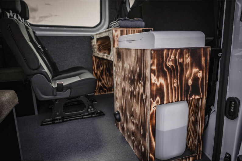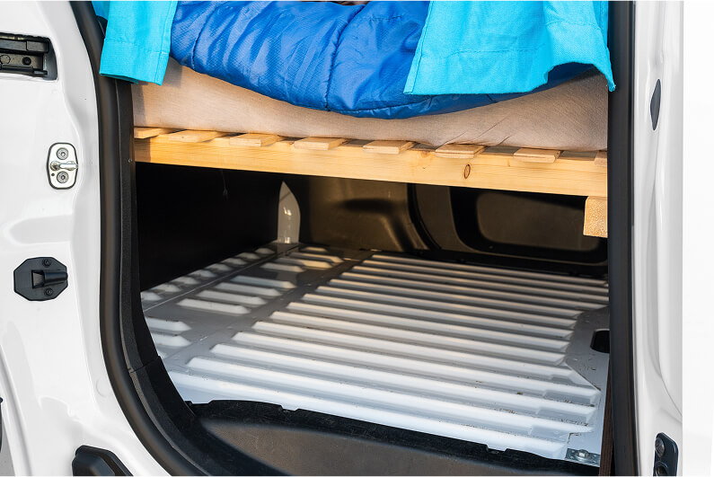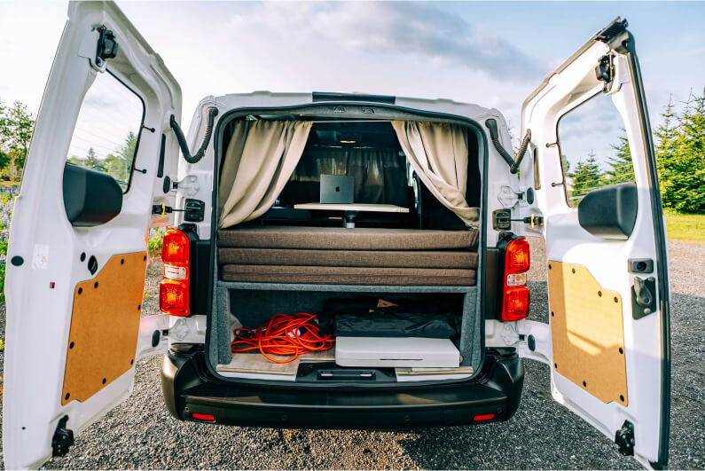 Say hello to our Campervan Play ECO, the perfect budget summer ride! Up front, it seats two comfortably, while the back transforms into a cozy double bed (140 x 200 cm) with convenient storage underneath. Please note: this camper has no built-in heater, which is why it’s only available during the warmer months.