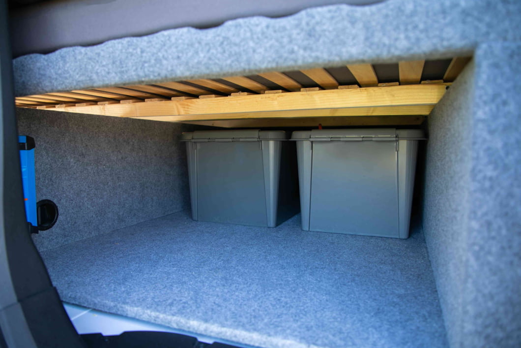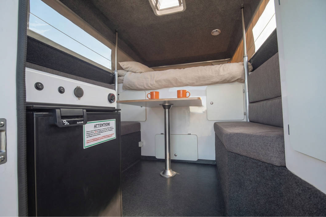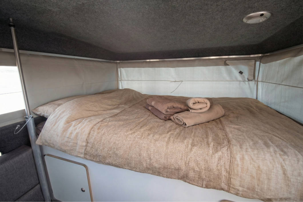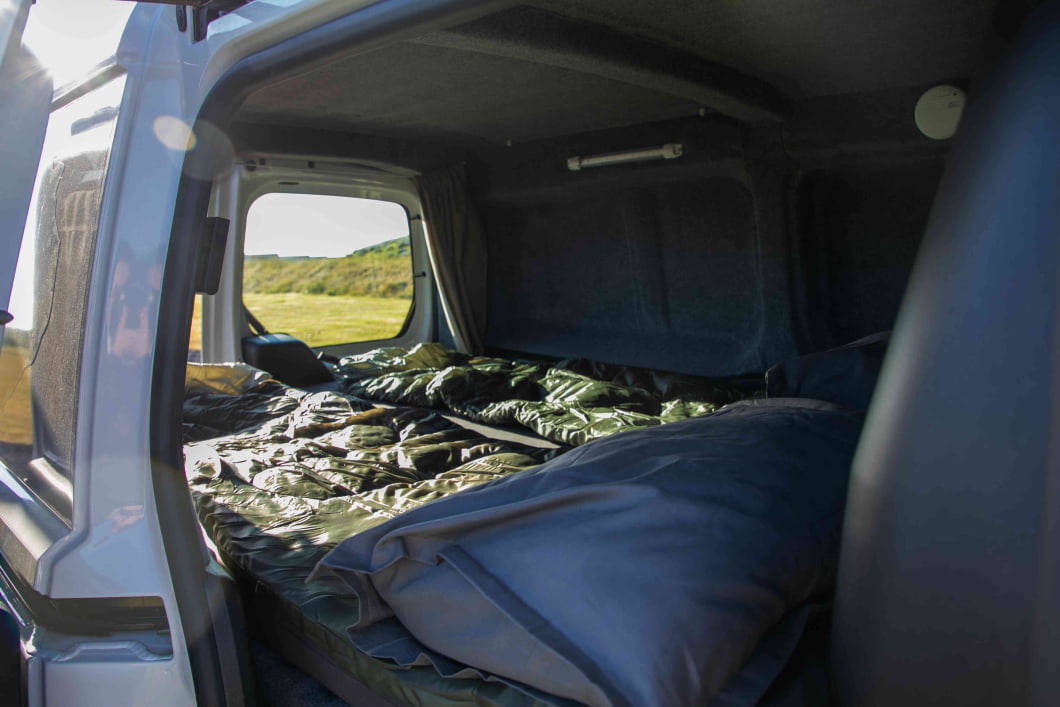 Say hello to our Campervan Go ECO, the perfect budget summer ride! Up front, it seats two comfortably, while the back transforms into a cozy double bed (140 x 200 cm) with convenient storage underneath. Please note: this camper has no built-in heater, which is why it’s only available during the warmer months.