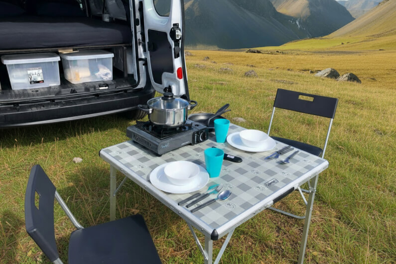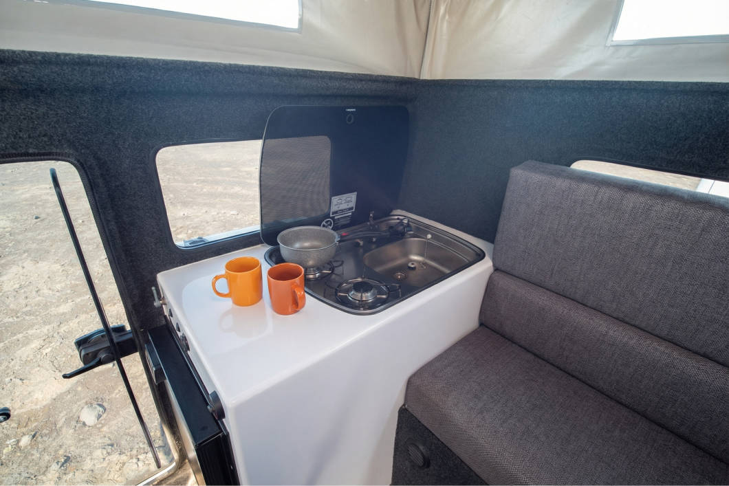 The Fiat Doblo or similar is a fully equipped camper that seats and sleeps up to two adults. The perfect solution for those seeking to enjoy an affordable yet comfortable dinner under the stars; a Max adventure for a mini price!
