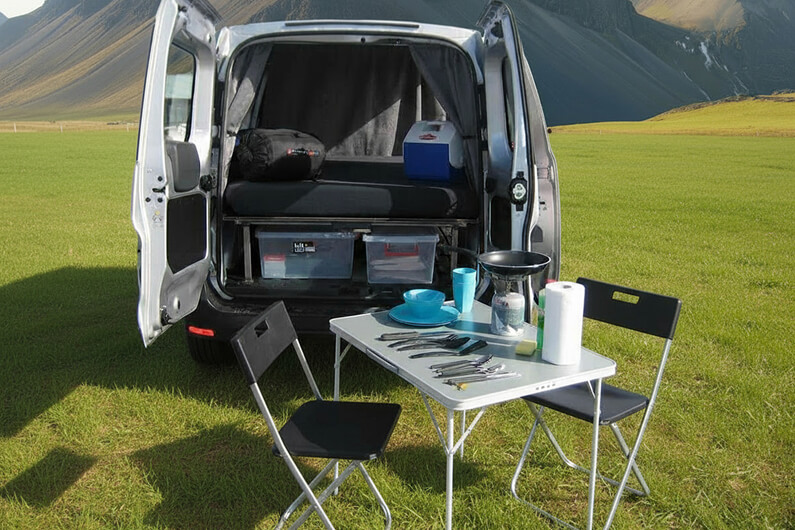 The Jeep Renegade Trailhawk is the perfect choice! This reliable vehicle ensures a smooth ride into the highlands, and its weatherproof tent provides a cozy space for two, complete with a proper mattress for restful nights. You’ll also have access to a complimentary camping set, water tank, and fully equipped kitchen amenities—everything you need to cook and thrive during your adventures. Don’t let anything hold you back!